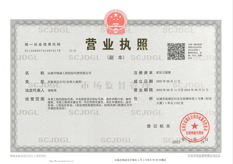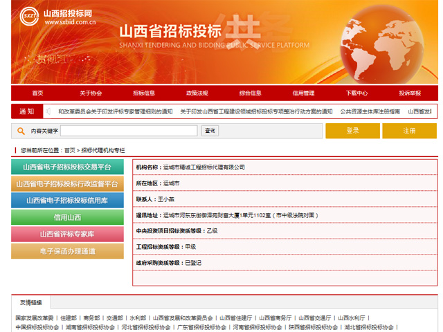 運城市精誠工程招標代理有限公司成立于2002年,具有國家住房和城鄉建設部頒發的甲級工程招標代理機構資格、國家發展和改革委員會頒發的乙級中央投資項目招標代理機構資格、在中國政府采購網上完成登記的政府采購代理資格公司,注冊資本金為人民幣500萬元。